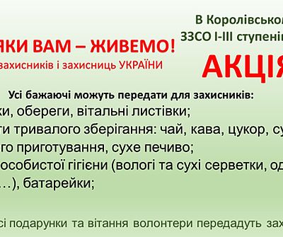УВАГА Благодійна акція до Дня захисників та захисниць України! Допоможемо, бо ми не просто учні, батьки й вчителі — ми команда підтримки ЗСУ!